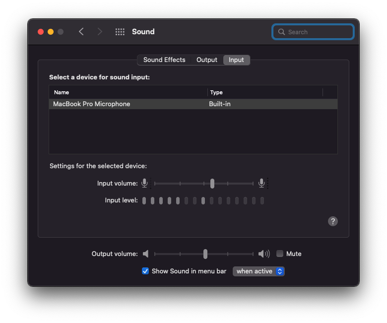 Input Level will start to light up, this means Microphone is working fine. If you want to check the clarity, try recorind something in Voice Memos